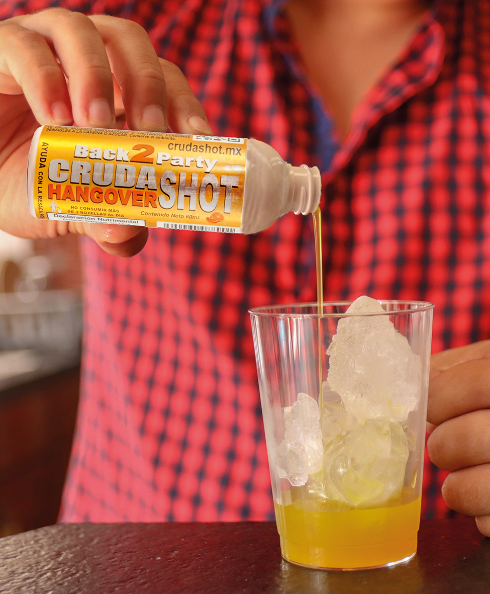 Es un Shot elaborado con ingredientes mayoritariamente naturales que te AYUDA con el malestar de la RESACA.